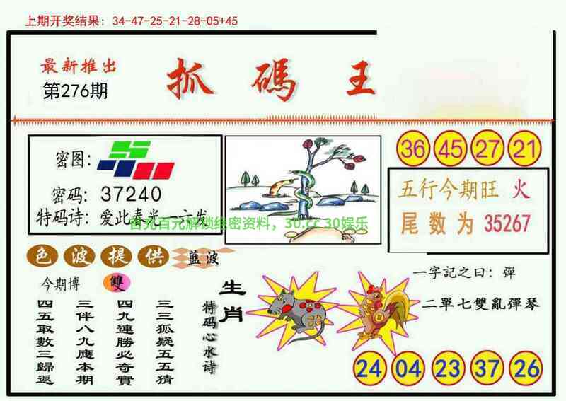 275期:一点红--精品24码--开:鸡45准 01.03.05.06.09.10.12.13.18.23.24.26 29.30.31.32.35.36.39.40.42.45.47.48 |